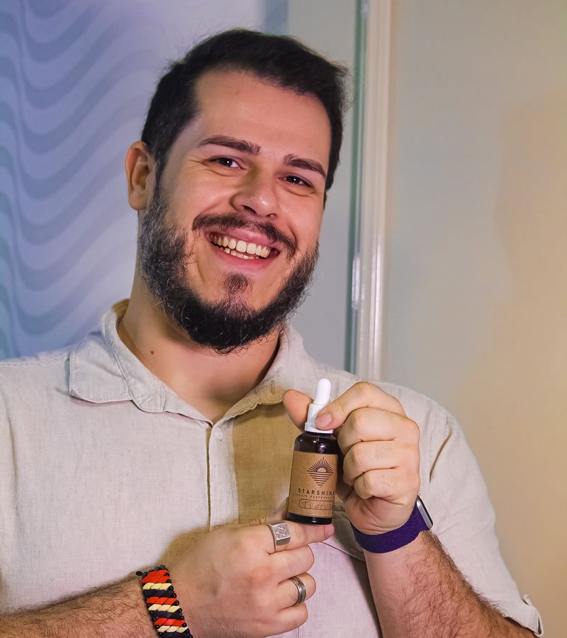 Julio Alquimista, um dedicado terapeuta floral com mais de seis anos de experiência, mergulhando nos sutis caminhos da cura por meio das flores. Seu conhecimento abraça uma gama diversificada de sistemas terapêuticos, destacando-se por sua profunda imersão no xamanismo. É no universo da sabedoria indígena que Julio encontra uma fonte rica de aprendizado, uma grande parte deste conhecimento foi transmitido por Tkaynã, membro da tribo Kariri-xocó.